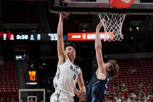 值得一提的是,在比賽次節(jié),楊瀚森接隊友傳球,殺入內(nèi)線直接隔扣了對手,獲得全場歡呼!