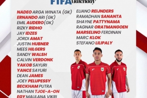 印尼國家隊(duì)最新一期名單如下: