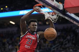 鵜鶘替補(bǔ)席上還有一名身高2米18的中鋒亨特-迪金森,他大學(xué)期間效力于密歇根大學(xué)和堪薩斯大學(xué),在2025年選秀大會上落選后,與鵜鶘G聯(lián)盟球隊(duì)簽下了一份雙向合同。大學(xué)5年他共出戰(zhàn)161場比賽,場均30.8分鐘,可以得到17.4分9.2籃板1.8助攻1.5蓋帽,投籃命中率55.5%,三分命中率33.9%,罰球命中率72.9%。他曾兩次入選全美二陣,一次入選全美三陣。