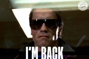 拜仁官方社媒曬出帶有6-0比分牌的終結者主題海報,配文:“I'M BACK?!?/p>
