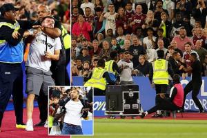 社交媒體用戶稱,當(dāng)藍(lán)軍攻入本場(chǎng)第五球后,有一名年輕的西漢姆球迷成功闖入球場(chǎng)。在主隊(duì)遭遇恥辱之夜的同時(shí),數(shù)千名憤怒的西漢姆球迷被拍到提前離場(chǎng)。