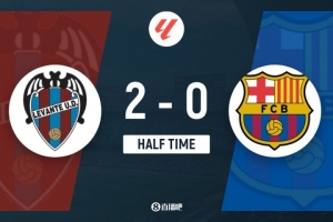 半場結(jié)束,巴薩暫0-2萊萬特。