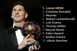 體育資訊8月24日訊 日前,金球獎官方回顧了2015年金球獎排名前十的球員,梅西最終得獎。