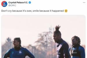 水晶宮官方曬昔日奧利塞-扎哈-埃澤三人組同框圖:別因?yàn)樗Y(jié)束而哭泣,要為它曾存在過(guò)而微笑??