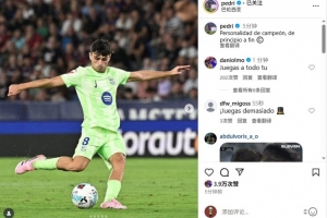 體育資訊8月24日訊 佩德里今天更新Instagram,曬出賽場照。