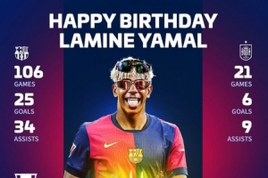 體育資訊7月13日訊 亞馬爾在今日正式迎來自己的18歲生日,而放眼世界足壇歷史也少有球員能在剛滿18歲時(shí)就能取得亞馬爾當(dāng)前的成就。