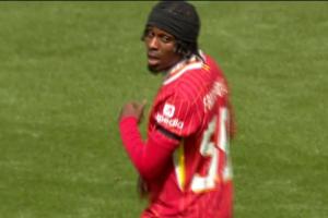 利物浦下半場陣容:56-伍德曼、3-遠(yuǎn)藤航、9-努涅斯、17-柯蒂斯-瓊斯、18-加克波、26-羅伯遜、50-本-多克、57-科爾克茲、59-弗林蓬、65-納洛、67-庫馬斯