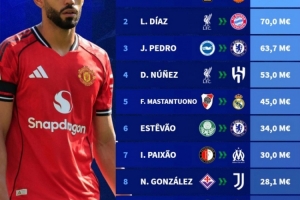 體育資訊8月26日訊 轉(zhuǎn)會市場盤點了今年夏窗截至目前南美球員轉(zhuǎn)會費榜單,其中庫尼亞居首,迪亞斯次席,具體榜單如下: