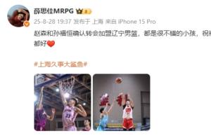 體育資訊08月28日訊 據(jù)《東方體育日報》記者薛思佳報道,上海男籃小將趙森和孫福恒確認轉會加盟遼寧男籃。