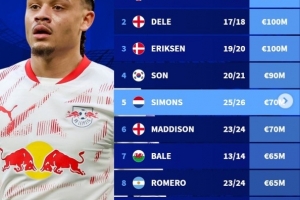 體育資訊8月30日訊 本周五,熱刺官方宣布以6000萬歐元從萊比錫簽下哈維-西蒙斯。根據(jù)德國(guó)轉(zhuǎn)會(huì)市場(chǎng)提供的數(shù)據(jù),西蒙斯的身價(jià)為7000萬歐元,在熱刺隊(duì)史足以排在第5位。