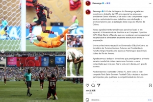 弗拉門戈俱樂部官方社媒也在決賽結(jié)束后第一時(shí)間發(fā)文:“弗拉門戈俱樂部感謝并認(rèn)可國(guó)際足聯(lián)的工作,尤其是主席因凡蒂諾及其全體高水平的技術(shù)和行政團(tuán)隊(duì),他們以奉獻(xiàn)精神和專業(yè)素質(zhì)為舉辦本屆世俱杯付出了辛勤的努力?!?/p>
