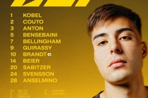 多特首發(fā):1-科貝爾、2-揚(yáng)-庫(kù)托、3-安東、5-本塞拜尼、7-喬布-貝林厄姆、9-吉拉西、10-布蘭特、14-拜爾、20-薩比策、24-斯文松、28-安塞爾米諾