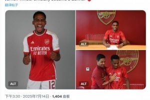 阿森納社媒曬出廷伯簽約的照片,配文:“兩年前的今天,廷伯正式成為一名槍手?!?/p>