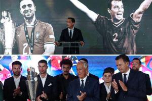 儀式由葡萄牙足協(xié)主席普羅恩薩主持,兩位已故國(guó)腳的家人——科斯塔的妻兒、若塔的父母與妻子,以及國(guó)家隊(duì)隊(duì)友、主帥馬丁內(nèi)斯、波爾圖俱樂(lè)部主席維拉斯-博阿斯等人共同見(jiàn)證。