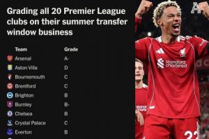 體育資訊09月03日訊 25/26賽季夏窗關(guān)閉,TA為英超20隊(duì)今夏的轉(zhuǎn)會(huì)操作評(píng)級(jí),利物浦A,阿森納A-,切爾西、曼聯(lián)和熱刺B,曼城B-。