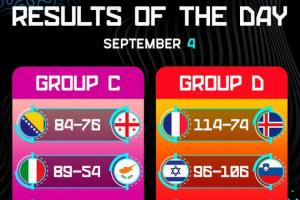 體育資訊09月05日訊 男籃歐錦賽當(dāng)?shù)貢r(shí)間9月4日的6場(chǎng)小組賽全部結(jié)束,詳細(xì)賽果如下:
