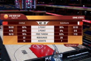 巴林男籃U16:阿卜杜勒卡迪爾16分8板、馬沙伊6分3板1助、穆罕默德3分2板3助、阿博奇2分5板1助、阿卜杜拉2分1板1助、阿里·哈達(dá)德2分1板、馬丹1板1助、哈比卜1板、古盧姆1板