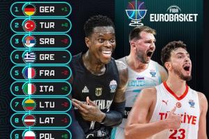男籃歐錦賽小組賽階段結(jié)束,F(xiàn)IBA官方給出了最新的實(shí)力榜,詳情如下: