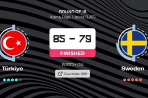 第三節(jié),土耳其找回了自己的節(jié)奏,單節(jié)凈勝13分,將戰(zhàn)局的優(yōu)勢(shì)扳回到了自己手上。末節(jié),瑞典再度發(fā)力一度將比分追平,但土耳其依靠全隊(duì)的出色表現(xiàn),穩(wěn)穩(wěn)拿下比賽,晉級(jí)八強(qiáng)。