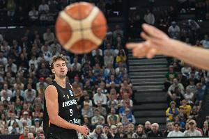 小組賽五戰(zhàn)全勝且場(chǎng)均凈勝32.8分的德國隊(duì)半場(chǎng)結(jié)束仍然落后對(duì)手1分。