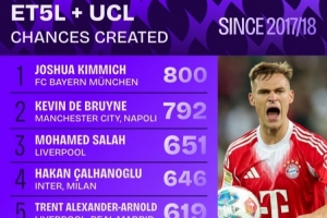 17-18賽季以來五大聯(lián)賽+歐冠創(chuàng)造機(jī)會榜: