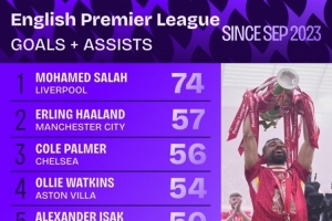 2023年9月以來英超參與進(jìn)球榜: