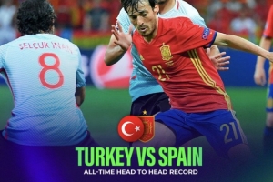 西班牙在與土耳其的交手中取得6勝4平1負(fù)的戰(zhàn)績,唯一一次失利是71年前的1954年,西班牙在世預(yù)賽0-1不敵土耳其。