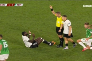 呂迪格被對(duì)手撞倒在地,但被吹罰為阻擋犯規(guī),下輪德國(guó)主場(chǎng)對(duì)陣盧森堡時(shí)將累計(jì)黃牌停賽。