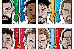 今天,歐錦賽官推曬出了8強對陣的海報,預熱1/4決賽。