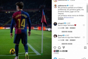托雷社媒曬出身穿巴薩球衣的照片,并寫道:“職業(yè)足球生涯首場比賽、首個(gè)進(jìn)球、首個(gè)冠軍,與最優(yōu)秀的球員并肩作戰(zhàn)。第一次的經(jīng)歷永遠(yuǎn)難以忘懷,謝謝你,巴薩?!?/p>