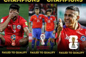 而智利17戰(zhàn)僅得10分提前出局,無(wú)緣美加墨世界杯。曾經(jīng)在2015、16年連奪兩屆美洲杯的智利,連續(xù)3屆無(wú)緣世界杯決賽圈,令人唏噓。