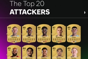 體育資訊9月9日訊 EA官方公布了FC26英超攻擊手評分榜,其中哈蘭德居首,具體如下: