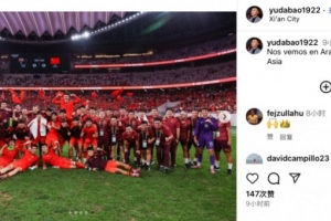 賽后前國(guó)腳、現(xiàn)擔(dān)任U22國(guó)足教練組成員的于大寶更新社媒,曬出了賽后全隊(duì)?wèi)c祝的合照,并用葡語(yǔ)寫道:“讓我們沙特再見?!?/p>