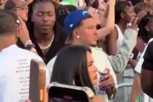 周日兩人共同觀看了Drake的40分鐘演出,此舉引發(fā)球迷強(qiáng)烈不滿。畫面中馬杜埃凱身著白色上衣搭配黑色棒球帽,桑喬則穿著同色系上衣配藍(lán)色帽子。