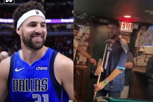 體育資訊9月13日訊 獨行俠球員克萊-湯普森被拍到在一家小酒吧里打臺球,對手失誤沒有打進黑球,克萊順勢逆轉贏下比賽。