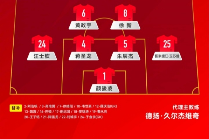 若本場(chǎng)比賽賽中國(guó)足不更換門(mén)將,24歲薛慶浩和21歲于金永將暫時(shí)無(wú)緣為國(guó)足出戰(zhàn)。
