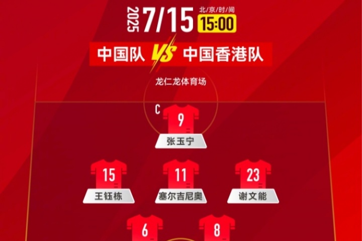 體育資訊07月15日訊 北京時間今日下午15:00,東亞杯第3輪,國足vs中國香港。賽前首發(fā)已經(jīng)出爐,國足官方也公布了首發(fā)陣型。
