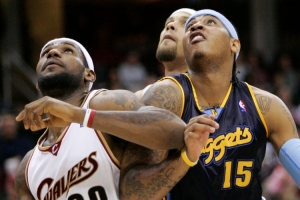 2003-04賽季,安東尼場均21分6.1籃板2.8助攻,掘金隊最終43勝39負(fù)排名西部第8進(jìn)入季后賽,詹姆斯場均20.9分5.5籃板5.9助攻,騎士隊最終35勝47負(fù)未能進(jìn)入季后賽。2003年最佳新秀評選,詹姆斯得分508分排名第一,安東尼得分403分排名第二。
