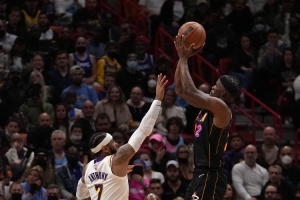 被問到熱火時期的巴特勒、尼克斯時期的安東尼、雷霆時期的喬治,誰首發(fā)、誰替補、裁掉誰時,霍里表示:“我會裁掉喬治,因為那是在雷霆的喬治,我會讓巴特勒首發(fā),因為我需要你攻守兼?zhèn)?,這是他而不是甜瓜首發(fā)的原因,季后賽吉米是另一種野獸?!?/p>