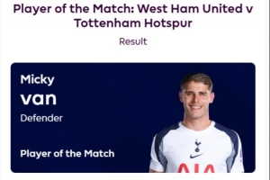 體育資訊9月14日訊 英超第4輪,熱刺客場3-0擊敗西漢姆。據(jù)英超官方消息,熱刺后衛(wèi)范德文被評(píng)為此役全場最佳,共獲56%的投票。