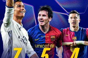 體育資訊9月14日訊 歐冠官方更新社媒動(dòng)態(tài),曬出C羅、梅西、萊萬(wàn)的歐冠數(shù)據(jù)。