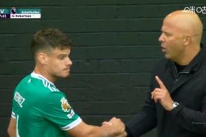 體育資訊09月14日訊 英超第4輪,利物浦客戰(zhàn)伯恩利,科爾克茲第38分鐘被換下,羅伯遜登場,斯洛特在場邊向科爾克茲解釋理由。