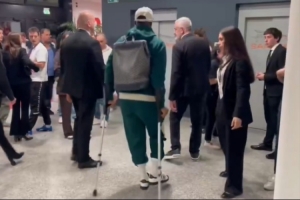 體育資訊9月15日訊 在米蘭1-0擊敗博洛尼亞后,傷退的邁尼昂被拍到拄拐離開球場。