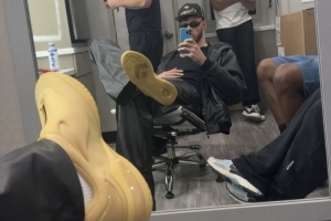 體育資訊9月15日訊 有網(wǎng)友曬出了一張雷霆球員霍姆格倫的對(duì)鏡自拍圖,照片中,霍姆格倫依靠在椅子上翹著腿,拍下了自己的球鞋特寫。