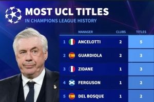 教練歐冠奪冠次數(shù)排名: