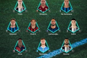 中場:扎萊夫斯基(亞特蘭大)、莫德里奇(AC米蘭)、恰爾汗奧盧(國際米蘭)、阿季奇(尤文圖斯)