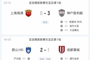 中超三隊(duì)亞冠精英聯(lián)賽首輪戰(zhàn)績(jī):