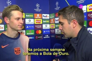 體育資訊9月19日訊 歐冠聯(lián)賽階段首輪比賽,巴薩客場2-1擊敗紐卡,巴薩中場德容賽后接受媒體的采訪,被問到了隊友競爭金球獎的話題。