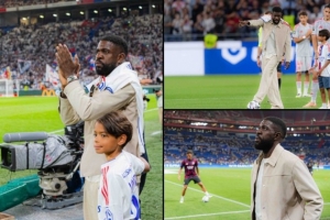 今天,里昂為烏姆蒂蒂舉行了一場(chǎng)簡(jiǎn)短但感人的致敬儀式:俱樂(lè)部向他贈(zèng)送了印有其名字的球衣,現(xiàn)場(chǎng)球迷則以熱烈的掌聲表達(dá)敬意。隨后,烏姆蒂蒂在賽前進(jìn)行了開(kāi)球儀式。