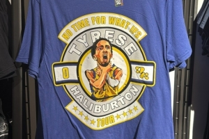 哈利伯頓曬出一張印有自己鎖喉漫畫照的WWE(世界摔角娛樂)周邊T恤,并@了WWE。